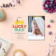 A beautiful hand drawn duck custom photo birthday invitation design. A cute "One lucky duck" yellow duck themed first birthday party invitation. A cute duck themed birthday invitation that can be customized to your details.