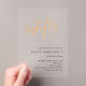 Une invitation design et moderne pour une fête du 50e anniversaire. Un arrière - plan clair et transparent et le mot Fifty écrit avec d'élégantes grandes lettres de script en faux or. Personnalisez et ajoutez un nom et des détails du parti.