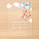 Invitez vos amis et votre famille avec style et réglez le ton pour votre journée spéciale avec cette charmante invitation de fête de naissance. Le design présente un ours bébé avec des ballons bleus.