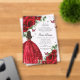 Personnalisez cette invitation acrylique boho chic rouge vibrante Quinceañera / Sweet 16 anniversaire invitation acrylique facilement et rapidement. Cliquez simplement sur le bouton customiser pour modifier les textes, modifier les polices et les couleurs des polices. Doté de roses rouges vifs, de papillons et d'une fille habillée d'une robe de bal rouge étincelante. Objets correspondants disponibles en magasin. c) Somerset Fine Paperie