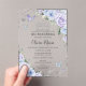 Personnalisez cette invitation plausible violet et bleu poussiéreux Quinceañera / Sweet 16 anniversaire acrylique invitation facilement et rapidement. Cliquez simplement sur le bouton customiser pour modifier les textes, modifier les polices et les couleurs des polices. Doté de belles fleurs violettes pastel et bleu poussiéreux, vert délicat, papillons et d'élégants accents argentés. Objets correspondants disponibles en magasin. c) Somerset Fine Paperie