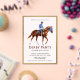 Course moderne Horse Derby Party Equestrian Invitation Modern Horse Race Derby Party Invitation avec une illustration d'un cheval de course avec jockey et motif rayé sur le dos. Tous les éléments de texte peuvent être changés afin que ce design puisse être utilisé pour d'autres événements aussi : faire-part de mariage équestre classe, fête d'anniversaire de cheval, fête de montre de derby, ouverture de grange de cheval et plus encore. Arrière - plan, la couleur de l'illustration et les couleurs du texte peuvent être changés à l'aide de l'outil de conception!