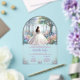 Faites briller sa célébration de jalon avec cette Invitation en acrylique forestière enchantée Quinceañera. Imprimée sur une magnifique carte acrylique en forme d'arc clair, cette invitation présente une forêt féerique magique remplie d'arbres étincelants, de fleurs pastel et de champignons capricieux. Au centre se dresse une belle jeune princesse dans une robe et une couronne blanche étincelante, créant une scène rêvée et élégante parfaite pour une célébration des años de coing enchantée. Idéal pour les thèmes imaginaires et boisés, ce design acrylique unique ajoute une touche luxueuse et moderne aux invitations traditionnelles. Personnalisez facilement avec le nom de votre fille, la date et les détails du lieu.