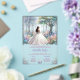 Faites briller sa célébration de jalon avec cette Invitation en acrylique forestière enchantée Quinceañera. Imprimée sur une magnifique carte en acrylique claire, cette invitation présente une forêt magique de contes de fées remplie d'arbres étincelants, de fleurs pastel et de champignons capricieux. Au centre se dresse une belle jeune princesse dans une robe et une couronne blanche étincelante, créant une scène rêvée et élégante parfaite pour une célébration des años de coing enchantée. Toute invitation à l'occasion - ajoutez simplement les détails de votre événement. Idéal pour les thèmes imaginaires et boisés, ce design acrylique unique ajoute une touche luxueuse et moderne aux invitations traditionnelles. Personnalisez facilement avec le nom de votre fille, la date et les détails du lieu.