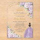 Invitations En Acrylique Purple Lilac Floral Princess Gold Quinceanera 15
