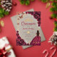 Burgundy, gold and white Quinceanera celebration invitation. Features brunette girl in ball gown dress, script font, gold butterflies, watercolor roses and tiara. Perfect for an elegant princess style glam celebration. Personalize with your own details. Stylish transparent or frosted acrylic invitations.