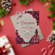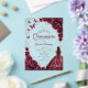Burgundy silver and white Quinceanera celebration invitation. Features brunette girl in ball gown dress, script font, silver butterflies, watercolor roses and tiara. Perfect for an elegant princess style glam celebration. Personalize with your own details. Stylish transparent or frosted acrylic invitations.