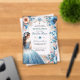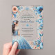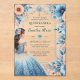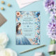 Invitations En Acrylique Quinceañera Dusty Bleu Pêche Fleurs Robe Argent