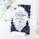 Invitations En Acrylique Quinceanera Navy Blue Silver Floral Dress