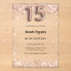 Pour une Quinceañera élégante, fête du 15e anniversaire. Un arrière - plan clair et transparent. Décoré avec des confettis en or rose et le numéro 15, écrit avec une police de style ballons. Personnalisez et ajoutez votre nom et les détails de votre fête.