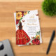 Personnalisez cette invitation acrylique vibrante de couleur rouge et de tournesol Quinceañera / Sweet 16 anniversaire invitation à l'acrylique facilement et rapidement. Cliquez simplement sur le bouton Modifier à l'aide des outils de conception pour modifier le texte, modifier les styles de police et les couleurs de police. Doté d'une fille habillée d'une belle robe rouge, d'élégantes fleurs rouges, de tournesols vibrants et de papillons rouges et or. Les papillons, coince fille et couronne sont mobiles, redimensionnables, multipliables et amovibles. Customisez-le pour convenir à votre occasion. Objets correspondants disponibles en magasin. c) Somerset Fine Paperie par The Happy Cat Studio.