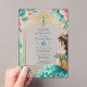 Invitations En Acrylique Quinceañera Turquoise Vert Or Mis Fleurs de coing
