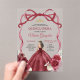 EDITABLE Red Bow Frame Princess Gold Crown Girl Quinceañera Acrylic Invitation