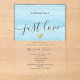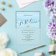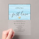 Faire-part de mariage acrylique chic et moderne avec un arrière - plan transparent clair, avec un motif de vagues bleu aqua, un coeur doré mignon, et élégant script de calligraphie. Parfait pour une réception décontractée... Rien de fantaisiste, juste de l'amour !