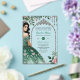 Invitations En Acrylique Robe rose verte Quinceañera Silver Mis Quince
