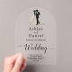 Cet élégant faire-part de mariage acrylique en arc noir et blanc est parfait pour un mariage moderne. Le design simple comprend une élégante calligraphie noire et une illustration de mariée et de mariée sur un arrière - plan transparent clair