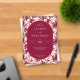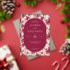 This elegant wedding invitation features a luxurious maroon oval panel surrounded by a vibrant floral pattern of red roses and green foliage on a soft pink background. The design showcases a sophisticated layout with clean, centered typography that highlights the couple's names in an elegant script font, while the date and location details are presented in a classic serif style. The overall theme exudes romance and formality, perfect for celebrating a significant life moment. With its rich color palette and detailed botanical motifs, this invitation sets the tone for a warm and memorable celebration.