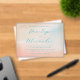 This wedding invitation features a soft, watercolor background with a gradient transitioning from peach to light blue, creating an inviting and romantic atmosphere. The elegant script typography adds sophistication, while the balanced layout ensures readability and focus on the event details. Perfect for a formal celebration, this design combines pastel tones and artistic flair, conveying warmth and anticipation for the special occasion.