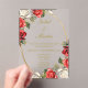 Rose blanche et rouge, élégante faire-part de mariage acrylique florale en espagnol, Invitación Elegante para Boda en español.