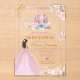 Robe Rose Floral Princesse Rosée Robe Château Royal Or Quinceañera Acrylique Invitation Élégante Fleurs rose Fleur Or Frame 15 Años Invitation mexicain Anniversaire Mis Quince Anos, 15e Anniversaire,