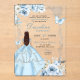 Bleu clair et Argent Floral Princesse Quinceañera Acrylique Invitations, Elégant Bleu Doux Beige Mis Quince Anos Invitacion