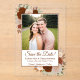 Ces belles cartes acryliques sont une façon spéciale et unique de faire connaître à vos amis et votre famille pour enregistrer la date pour votre prochain mariage. Le design boho chic rustique comprend votre photo entourée de roses d'aquarelle peints à la main dans les teintes d'automne de rouille orange, le nombre brûlé, et pêche, ainsi que des sprigs d'eucalyptus et le feuillage d'automne. Il y a de la place ci-dessous pour vos noms, la date et l'emplacement du mariage. Une belle façon de commencer votre voyage mariage.