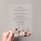 Invitations mariages de automne romantiques avec vos détails mariages dans les accents de script de calligraphie moderne en haut de la conception. Un pré de fleurs d'aquarelle rustique et de feuillage dans les tons d'ivoire, de crème, de marsala, de bordeaux, de brun et de rouille orange le fond, dressé contre un arrière - plan acrylique gelé ou transparent. Ce design captivant mélange magnifiquement les couleurs des fleurs d'automne et du feuillage délicat, capturé par l'aquarelle art, créant un souvenir fascinant pour votre journée spéciale. Célébrez l'amour et embrassez la saison avec notre Rustic Autumn Floral Meadow Faire-part de mariage. Parfait pour les mariages de automne, cette invitation se coordonne avec notre collection Rustique de mariages floraux d'automne pour une célébration sans heurts.