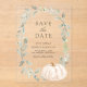 Éblouissez vos invités avec cet élégant enregistrer la date avec de beaux feuilles et citrouille blanc rustique. Ajoutez simplement les détails de votre événement sur ce modèle facile à utiliser pour en faire une carte unique de sauvegarde de la date.