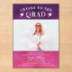 Bravo au Grad tendance moderne photo rose violet partie acrylique Invitation présente votre photo de graduation préférée avec le texte blanc "Cheers to the Grad" dans script de calligraphie moderne accentué avec une casquette de graduation avec votre personnalisation fête de graduation informations ci-dessous sur un arrière - plan d'eau rose et violet ombre. Coloré, moderne et unique. Conçu par Evco Studio www.zazzle.com/store/evcostudio