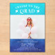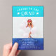Cheers To The Grad Modern Photo Blue Party Acrrylique Invitation présente votre photo de graduation préférée avec le texte blanc "Cheers to the Grad" dans script de calligraphie moderne accentué d'une casquette de graduation avec vos informations d'invitation à la fête de graduation personnalisée ci-dessous sur un arrière - plan d'aquarelle bleu ombre. Coloré, moderne et unique. Conçu par Evco Studio www.zazzle.com/store/evcostudio