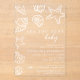 Printed on clear acrylic for a sleek, glass-like finish, this invitation beautifully captures the essence of a beach, coastal, or ocean-themed baby shower. The minimal yet detailed design allows the soft neutral background or envelope liner to subtly show through, adding an elevated, luxury feel your guests will instantly notice.