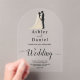 Cet élégant faire-part de mariage acrylique en arc noir et blanc est parfait pour un mariage moderne. Le design simple comprend une élégante calligraphie noire et une illustration de mariée et de mariée sur un arrière - plan transparent clair