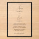 Create a timeless first impression with our Simple Elegant Black & White Border Script Wedding Acrylic Invitation, featuring crystal-clear acrylic accented by a sleek black border and graceful script typography that blends modern minimalism with classic elegance for a refined, luxurious presentation of your wedding details.