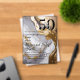 Sleek and modern "50" and elegant script text "fifty" 50th anniversary party design featuring the number "50" overlaid with the age in script on a faux gold, white and gray marbled background with clear see-through areas. Perfect for celebrating your most sophisticated friends and family.