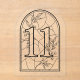 Faux Stained Glass Style Table Number Eleven. Please note: This is a stained-glass inspired printed design, not real stained glass. Modern stained-glass inspired table number 11, featuring bold cathedral-style leading lines in a clean, minimalist layout. Line colour and background can be customised to match your wedding palette. Printed on clear acrylic. Sold as individual table numbers, as the table number within the design is non-editable. Perfect for modern, minimalist, black-and-white, or cathedral-inspired weddings.