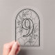 Faux Stained Glass Style Table Number Nine. Please note: This is a stained-glass inspired printed design, not real stained glass. Modern stained-glass inspired table number 9, featuring bold cathedral-style leading lines in a clean, minimalist layout. Line colour and background can be customised to match your wedding palette. Printed on clear acrylic. Sold as individual table numbers, as the table number within the design is non-editable. Perfect for modern, minimalist, black-and-white, or cathedral-inspired weddings.