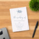 Cette faire-part de mariage acrylique minimaliste de plage bleu poussiéreux moderne a deux étoiles de mer en haut, et la calligraphie manuscrite tendance écriture script. Le dos est bleu poussiéreux.