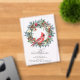 An elegant red cardinal nestled in a winter greenery wreath invites guests to your winter or Christmas birthday party. The watercolor design features a beautiful cardinal and a pine wreath decorated with red flowers and berries along with pine cones.