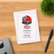 Faites une déclaration audacieuse avec cette invitation de fête d'anniversaire de voiture de course élégante imprimée sur de l'acrylique transparent élégant! Doté d'une voiture de course rouge classique et d'un drapeau à damiers sur fond de soleil rouge audacieux, cette invitation est entièrement personnalisable à tout âge. C'est la touche de qualité idéale pour les fans de course et les célébrations à grande vitesse.