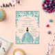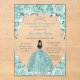 Invitations En Acrylique Turquoise Green Floral Princess Silver Quinceañera