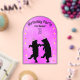 This Frosted acrylic Birthday Party invitation has the silhouette of two happy dancing black bears wearing pink striped party hats with lines of gold sparkle stars on a pink background.   Customise all the text with the templates.