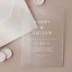 Cette typographie chic blanc moderne boho invitations acryliques mariages simples sont parfaites pour un mariage moderne. Le design simple est caractérisé par une typographie minimaliste classique et une atmosphère boho rustique.
