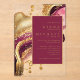 Cet ensemble élégant aux tonalités rouge vigne un ton raffiné à votre mariage, qui séduit vos invités avec un aperçu de la célébration opulente qui vous attend. Amélioré avec l'éclat somptueux des accents de parties scintillant dorée, le faire-part de mariage acrylique présenté ici fournit un modèle pour ajouter facilement vos propres noms, date mariage et détails de l'événement et la belle abstraite sur un arrière - plan transparent est sûr de laisser une impression durable. Recherchez ID1018 pour voir d'autres pièces dans ce jeu de mariages coordonné.