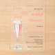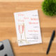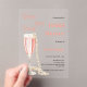 Une invitation moderne, élégante et glamour pour un Vino avant Vows Fête des mariées. Un arrière - plan transparent et transparent avec un verre, flûte avec des bulles roses et des perles. Le nom est écrit avec un script de style moderne écrit à la main. Personnalisez et ajoutez les détails de votre fête.