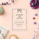 Design feature a simple black and white design with a cute hand drawn wavy border and a small black bow at the top. Using a clean classic font and handwritten calligraphy script. It looks elegant but also a little playful.