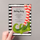 Elf legs in striped tights and green boots on black and white stripes and gold dots, these Christmas party invitation are fun for any holiday occasion. MATCHING items in our store.