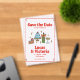 The Whimsical Hand Drawn Bold Red Playful Save the Date Invitation combines hand-drawn illustrations with bold retro typography on an acrylic background.