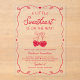 Celebrate the mom-to-be with this whimsical A Little Sweetheart baby shower invitation, beautifully printed on clear acrylic for a modern, elevated look. The phrase “A Little Sweetheart Is on the Way” appears in playful handwritten red lettering, paired with heart-shaped red cherries tied with a delicate bow for a charming coquette-inspired accent. A hand-drawn ribbon border frames your shower details, with tiny red hearts adding a sweet, Valentine-inspired finish. Available in your choice of clear or frosted acrylic, this unique baby shower invitation offers a sleek alternative to traditional paper while maintaining a soft, romantic feel. Personalize the wording to create a memorable invitation perfect for February or Valentine’s Day baby showers celebrating a baby girl.