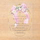 Invitations En Acrylique White Flowers Pink Bow Girl Baptism Transparent