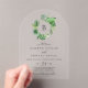 Ces invitations acryliques pour mariage à la plage d'arche de palme tropicale sauvage sont parfaites pour un mariage à la plage. Le design comprend un éventail exotique de feuilles de bananiers verts aquarelles, fougères, feuillage, plantes botaniques et verdure pour une atmosphère tropicale estivale.
